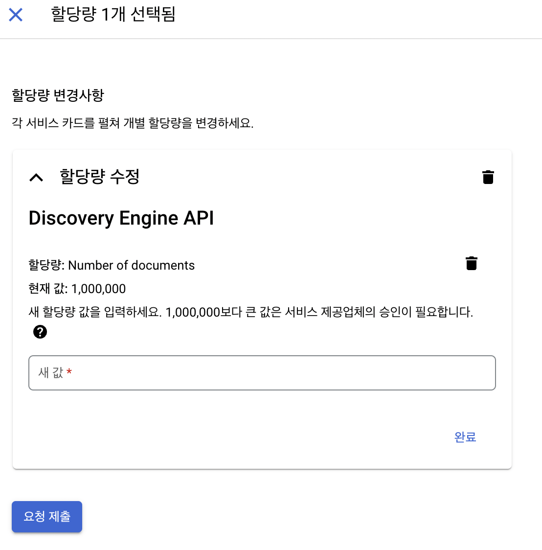 GCP에서 MLOps를 구축 중, RAG를 위한 Discovery engine의 데이터 최대 수량이 초과되었다는 경고를 받게 되었다.