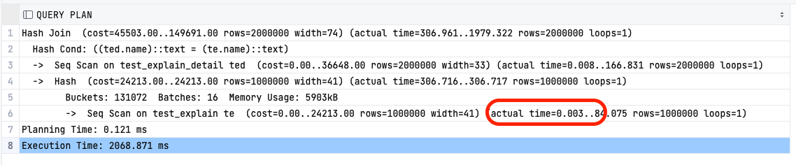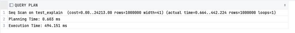 EXPLAIN ANALYZE SELECT * from TEST_EXPLAIN;