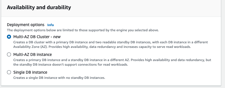 RDS의 비용을 결정하는 것 중 가장 큰 옵션 중 하나는 배포 옵션이다.