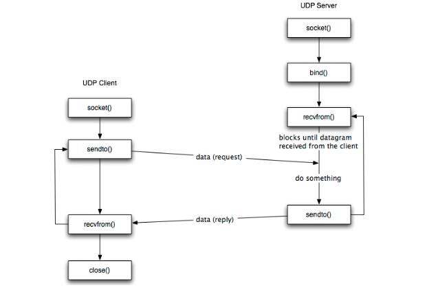 - accept 과정 없이 소켓 생성 후 바로 데이터 송수신