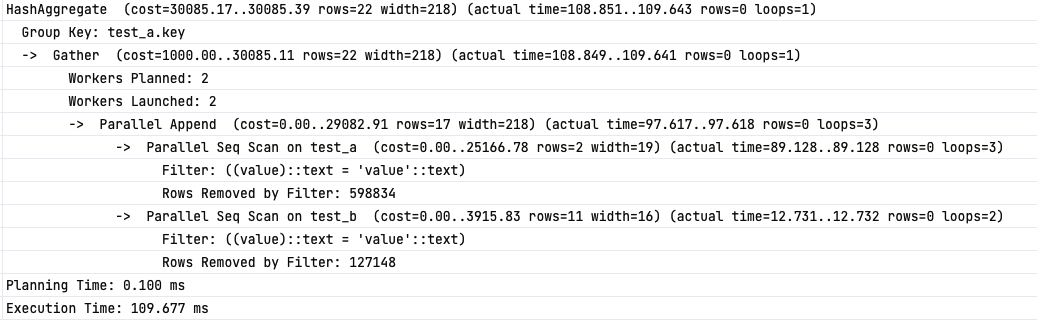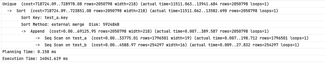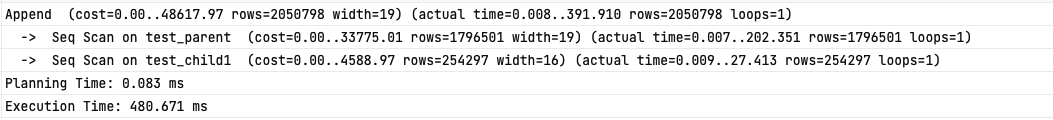 기존 Union은 각 테이블에 seq_scan 후 정렬하고 상속 테이블은 부모, 자식 각 테이블 seq_scan 후 바로 완료한다.