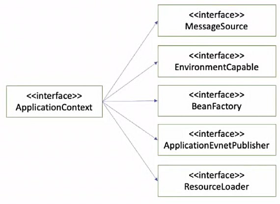 도식을 보면 ApplicationContext 인터페이스가 다른 인터페이스를 다중 상속하고 있다