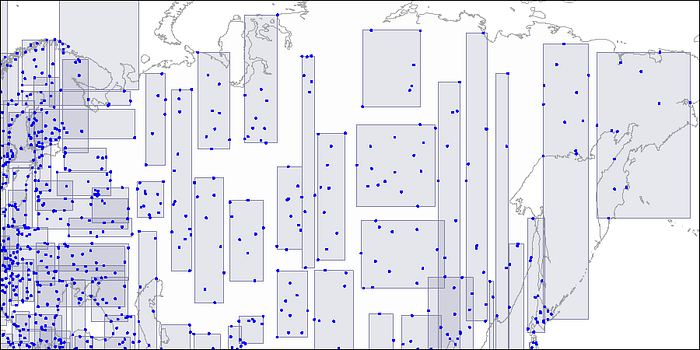 ROOT page 는 몇몇 최대로 큰 사각형을 보유하고 있으며, child nodes는 큰 사각형들에 포함된 작은 사각형들을 포함하고 있어 모든 point들을 커버할 수 있도록 구성된다.