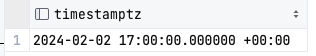 SELECT '20240202 12:00 +0200'::TIMESTAMP WITH TIME ZONE;