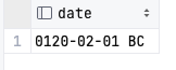 - bc 문자열을 통해 기원전 설정이 가능하며, BC(기원전)이 설정되어 있다면, 내부적으로는 연도를 음수로 바꾸고 1을 더한 후 저장한다. (그레고리력에는 연도 0이 없으므로 수치상 1 BC는 연도 0이 됨)