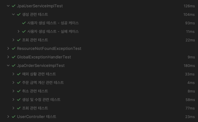 @Nested와 @DisplayName을 적절히 사용하면 아래와 같이 가독성이 높은 테스트 트리를 구성할 수 있습니다: